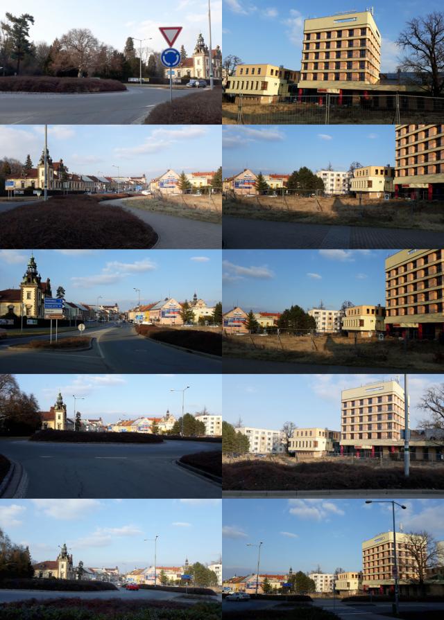 navazující na dopravní stoku připomíná vybombardované město po válce, kdy na