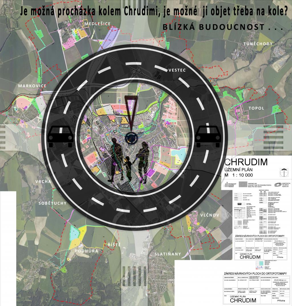 PROCHÁZKA Minule jsem se pokusil obejít Chrudim navazující zpustošenou krajinou, po cestách co nikam nevedou, po neexistujících cestách a jejich špatně udržovaných zbytcích, které působí jako zjevení a přitom by mohly přibližovat lidi ke krajině, městu a k sobě navzájem. Prošel jsem místa, kde by šly cesty spolu s krajinou opět oživit a krajinu zprůchodnit, aniž by ztratila své kouzlo. Minulá procházka měla upozornit na to, že kolem města lze posílit různorodost a pestrost krajiny s ohledem na maximální využití toho, co tu ještě zbylo. Že jde životní prostředí vcelku rozumně udržovat a sdílet, že to jde i kolem města udělat pěkné a že to je ten největší a nejparádnější prostor pro každodenní aktivity a úplně běžnou rekreaci, kde každý může zadarmo dělat něco pro své zdraví. Zdravé město by mohlo mít proto zdravější a přívětivější okolí. Že i obyčejné okolí města může nabízet lidem spousty věcí, které pak obdivují párkrát do roka někde v zahraničí. A jaká je realita? Projdeme si stejnou cestu podle územního plánu Chrudimi z roku 2013. VÍTEJTE V NOVÉM
