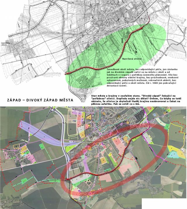 plán? Ví, že pokračuje zničením severu a západu města? Má územní plán negativní vliv na podobu území kolem města? Zatím ano. Lidé by měli mít povědomí o územním plánování. Protože jakmile se ve městě a kolem něj něco zničí, už se pravděpodobně do nejdelší smrti nedožijí ničeho lepšího. Týká se to nejen nenávratné ztráty starých staveb ve městě, ale i ztráty krajiny stavbou zbytečných silnic a dopravních komunikací. Takže pokud jsou ve městě lidé, kterým vývoj a podoba města není lhostejná, měli by s tím pomalu něco začít dělat. Jakmile územím mezi Markovicemi a Sobětuchy projde nová silnice, ať se jedná o silnici I., II. či III. třídy, jde celé slušně řečeno “do kopru“. Obdobně jako nová silnice z Vestce do Markovic. Okolí města bylo zničeno. Dopravní silnice už bude jenom bobtnat, nafukovat se, přizpůsobovat se autům. Silnice bude postavená, ať žije silnice. Jsou věci, které možná pěkně a elegantně vypadají nakreslené na papíře. Kéž by tam také zůstali, aspoň do doby, než si lidé všimnou, že jim územní plán zase zničí nevratně kus města, když věci lze řešit i jinak. Stejně jako tohle nesmyslné silniční propojení. Ale mít kruh silnice kolem celého města, tomu asi odolá málokdo. Územní plánování by mělo být sdíleným občanským dokumentem, proto by bylo fajn, aby si lidé těchto věcí všímali, než se postaví. Pak už s tím na beton do své smrti nic neudělají. Bohužel, zatím ve volbách řady českých měst vítězí politici, kteří na přání svých voličů města a jejich okolí spíše ničí. Ničí je i tím, že si okolí měst od roku 1989 raděj nevšímají. Nepředpokládám, že moc lidí zná územní plán ani to, co jim připravuje. Jednou z velkých věcí je zmíněný velký silniční kruhák kolem města – silniční asfaltové dopravní korzo. Možná udělá takovou hezkou tečku za všemi ostatními chrudimskými kruháky. Když už tohle někdy někdo nakreslí, tak nezbývá doufat, že se nenajdou peníze. Tedy, že se v dohledné době věci nebudou realizovat a v té pozdější už se lidé na věci budou dívat rozumněji. Snad se peníze na dlouhou dobu vyčerpají na nový obchvat a než se začnou zase dávat do silnic, bude už krajina kolem města obnovena a jen tak náhodou přijde už jiná doba. Navíc lze doufat, že generace kružítkových dopravních plánovačů odejde do penze a svět, který jejich zásluhou zestárl o další zbytečné silnice, bude v budoucnu poučenější. Je načase uvažovat jak zabránit dopravním inženýrům ve zničení této části města a hledat jiná řešení, než přináší zastaralý územní plán. Doprava musí být dnes řešena nejen v souvislostech Chrudimi, ale společně s širším okolím včetně Slatiňan. Vhledem k tomu, jak rychle se dnes ničí okolí obou měst, tak velmi obezřetně. Předložené řešení území je dnes přežité, a pokud bude realizováno, bude pokračovat v ničení zdevastovaného okolí města. Obchvat Východ města protnul obchvat. Dobře, ale co bude dál? Nyní lze snad konečně udělat vše proto, aby zničenou krajinu vyvážil příjemný život ve městě a kolem něj! Zatím to nefunguje. Nikdo zatím od roku 1989 neřešil smysluplně a cíleně obnovu území kolem města. Bude se na ní čekat další desítky let? Mohla být hotova už před obchvatem. Shrnuto – hnusná a neprůchodná krajina doničená obchvatem, kterou neprojdete jinak, než po silnicích vzdálených pár kilometrů kolem města. Až se někdy dostaví část obchvatu na Slatiňany, bude se situace opakovat jako přes kopírák. Úplně stejné prachy a stejná péče jako o dopravu, obchvaty, silnice a auta by měla být věnována obnově životního prostředí kolem města, sídelní krajiny a místnímu rekreačnímu potenciálu. Pro život lidí ve městě a kolem něj by to měla být stejná a ne-li z pohledu budoucnosti větší priorita, než se přes město dostat dneska autem. Na příkladu obchvatu je krásně vidět, že lidé jsou dnes schopni zničit krajinu předtím, než ji vůbec dokážou smysluplně obnovit. Stavět v zemědělské poušti kolem města a ve zničeném prostředí postavit silnice všem vyhovuje. Do hnusného a zdevastovaného prostředí zapadne všechno. Zničená krajina se ničí dál lépe, než ta obnovená. Kdyby krajina vypadala krásně a člověk by byl na ni patřičně hrdý, asi by o spoustě věcí uvažoval už trochu jinak. Minimálně z více pohledů. Na příkladu dnešního obchvatu za stovky miliónů je vidět, jak je těžké kolem města obnovovat drobnosti a dřívější všednost a pestrost. V předstihu se raděj vše rovnou zničí. Kdyby krajina vypadala krásně a člověk by byl na ni patřičně hrdý, asi by si všiml, že ji bez nároku na obnovu stále jen ničí. Tedy aspoň kolem Chrudimi. Co tu bude ? Sever a západ Chrudimi zničí také silnice. Silnice půjde od letiště přes horizont a spojí vznikající zástavbu v Sobětuchách s Markovicemi. Projde nad průmyslovou zónou, aby definitivně uzavřela město od okolí v jednom silničním kruhu. Jezdit po stávajících silnicích není v rozvinutém světě moderní, nejde to. Když byla zničena jedna půlka města, ať je dílo kompletní a město vypadá z okolí stejně. Navíc řada řidičů projíždějících městem to ocení. Určitě ocení, když se obchvatu ještě narodí bratříček. Někdy v budoucnu se pak město možná také zaměří na lidi, co v něm bydlí. Sám velký učitel děda Drchlík v seriálu Návštěvníci v 6. dílu v kapitole Tajemství velkého učitele, odhalil tajemství kruhu a to, že kruh je mocný a podstata všeho. „Protože ten kámen se roztočí do kruhu a kruh je mocnej. Teď mrskni do vody tuhletu cihlu. Jaká je? Kulatá? Hra