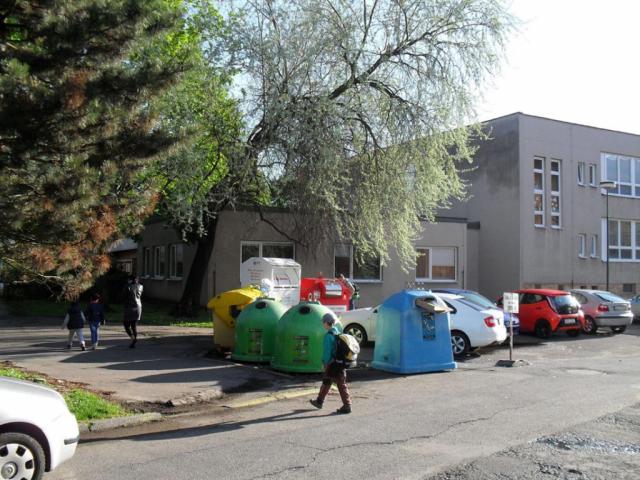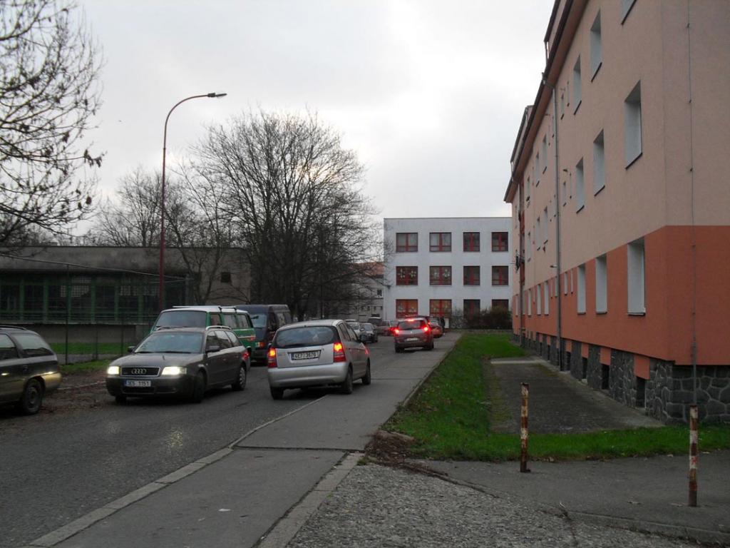 veřejný prostor, který školy obklopuje, připomíná v tom lepším nákupní či