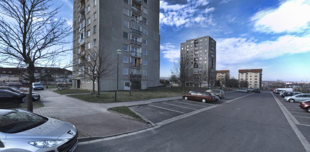 její zbytky. Zateplený stoletý domek, zateplený panelák, asfalt, beton, zámková