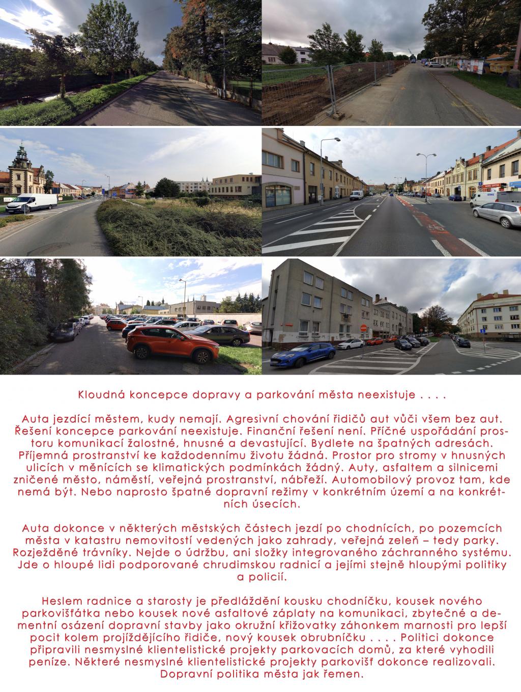 Auty, asfaltem a silnicemi zničené město, náměstí, veřejná prostranství, nábřeží.