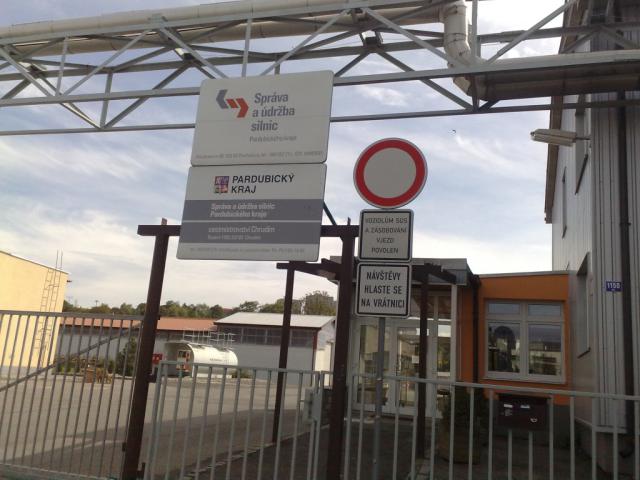 a Správa a údržba silnic Pardubického kraje hospodaří v areálu naproti
