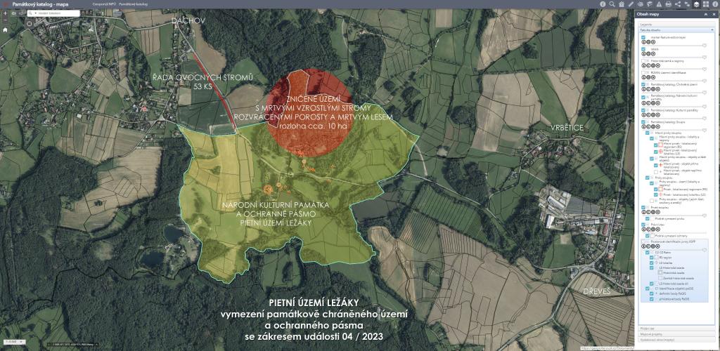 zničeného území o rozloze cca. 10ha přímo v pietním území a jeho ochranném