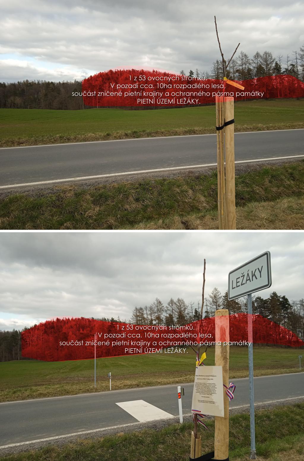 majetku příbuzných iniciátora akce, jak uvedeno v článku na iRozhlasu. Výsadba řady ovocných stromů v souvislostech zničeného pietního