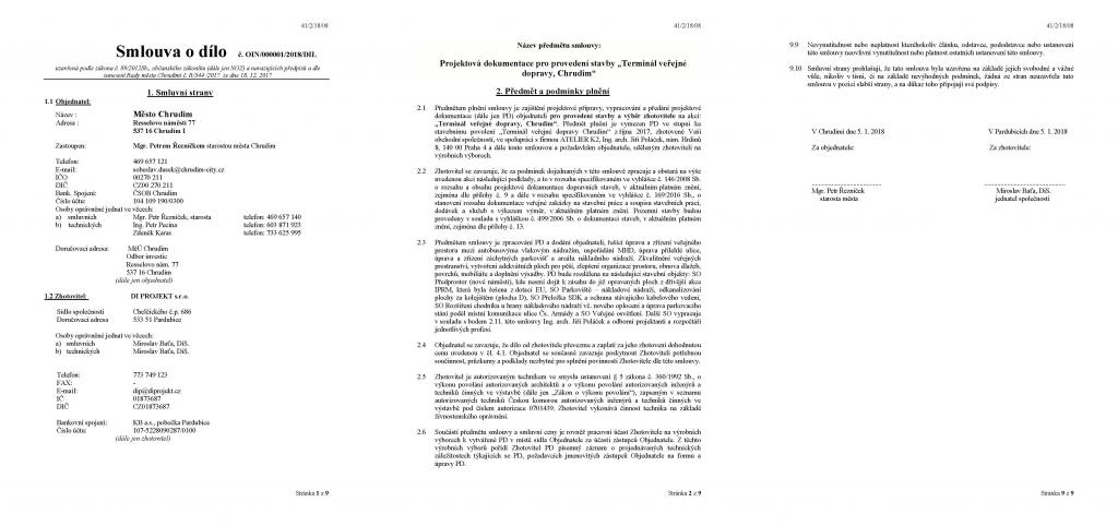 podepsalo s firmou DI PROJEKT s.r.o. 5. 1. 2018 smlouvu, jejímž
