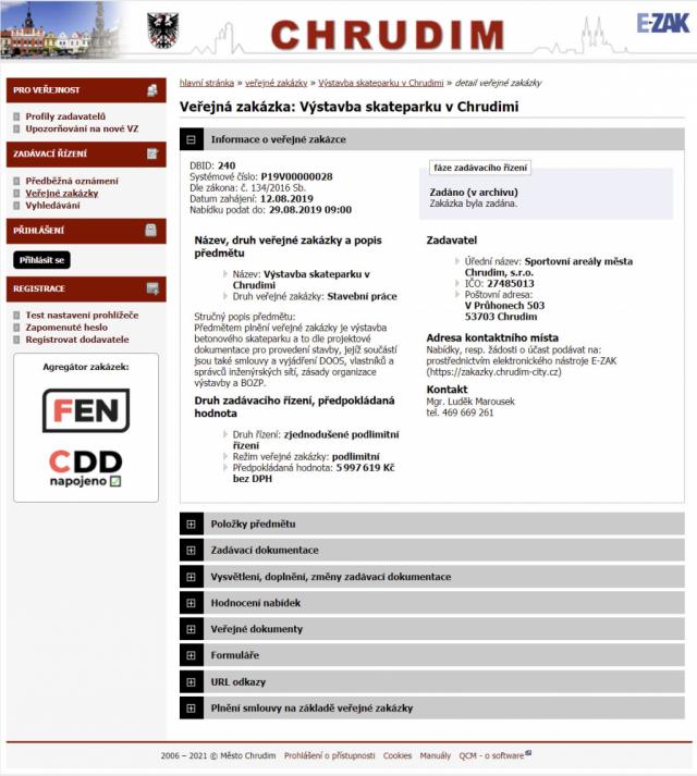 Skatepark Chrudim https://www.sportovistechrudim.cz/cz/skatepark/ VEŘEJNÁ ZAKÁZKA |