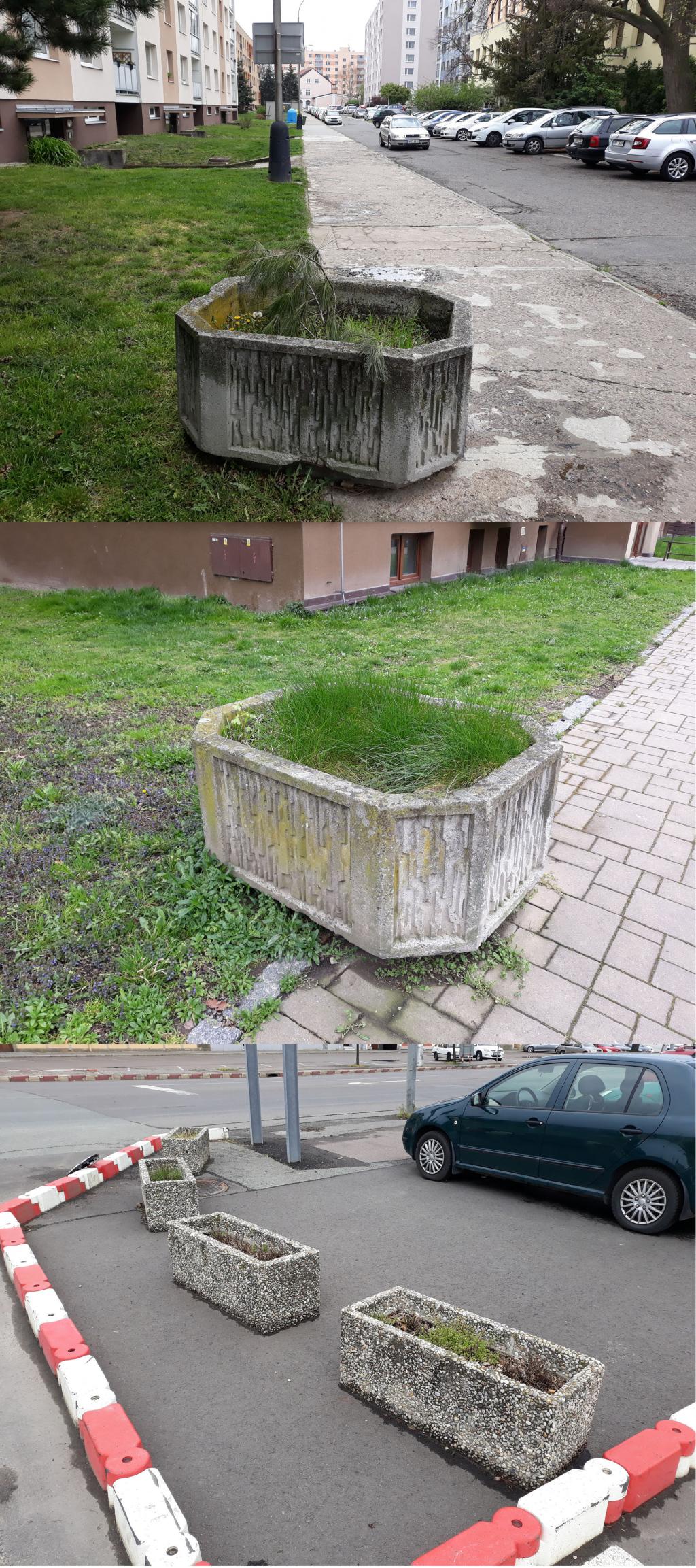 neodpovědně řešený veřejný prostor města žádný trávník, žádný strom ani žádný
