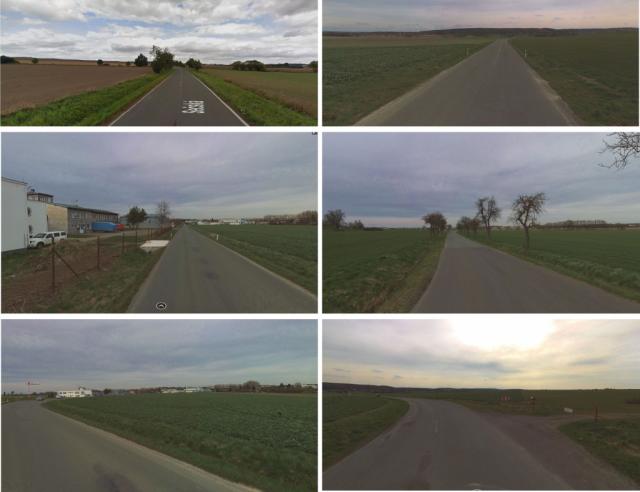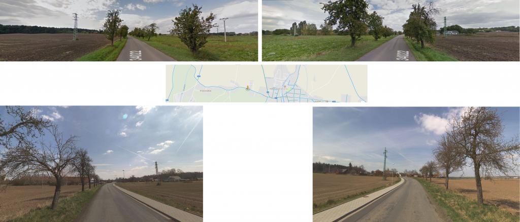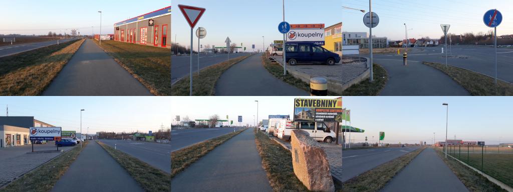 ve vzdálenosti cca 3,6m. Jedná se o novou tuctovou tři metry širokou asfaltovou