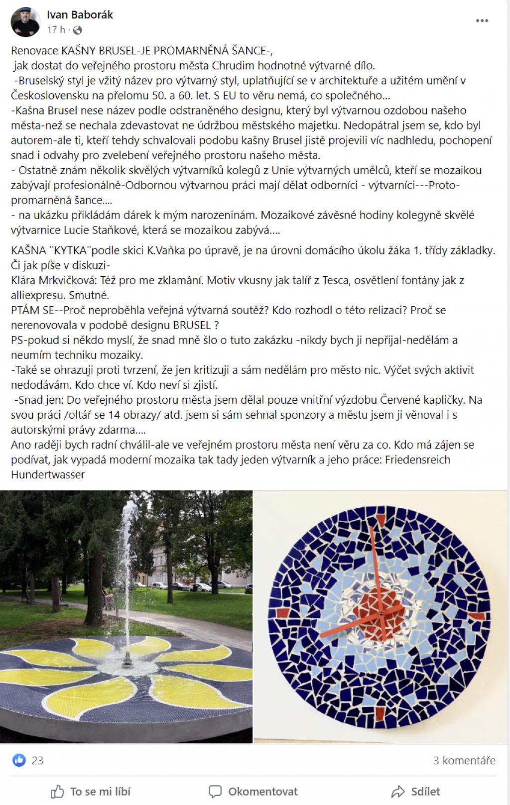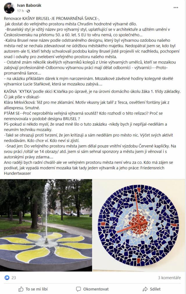programu Chrudimáků prý splněn. Opravu nebo hodnotu “uměleckého“ díla hodnotit