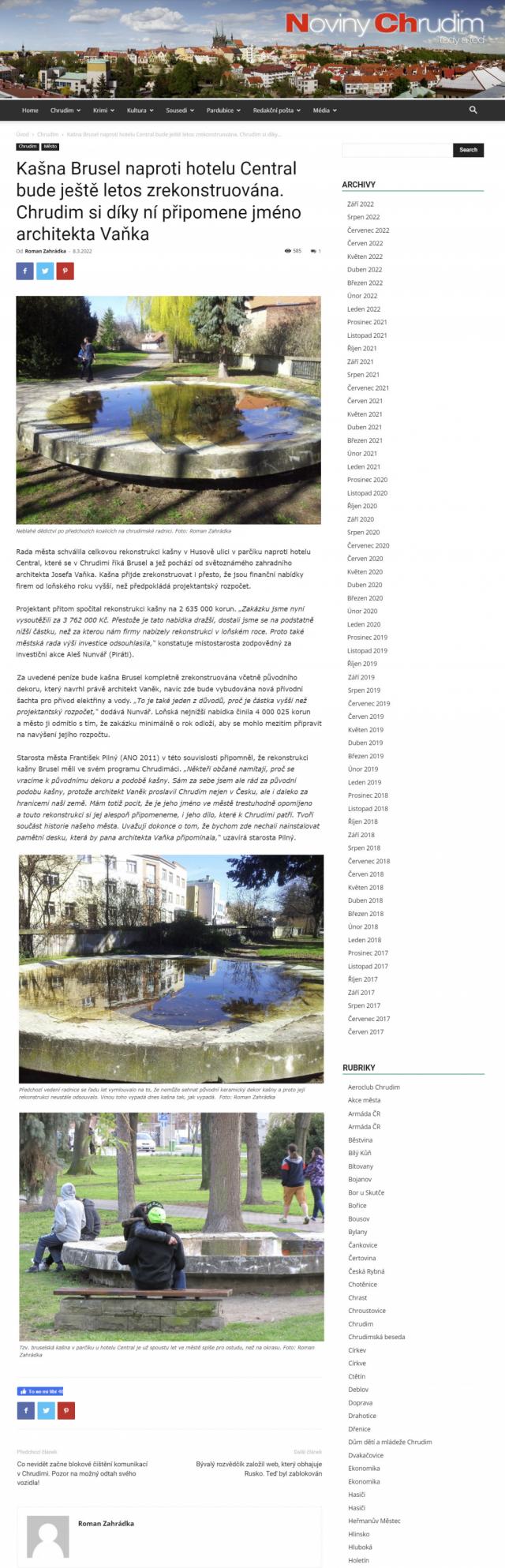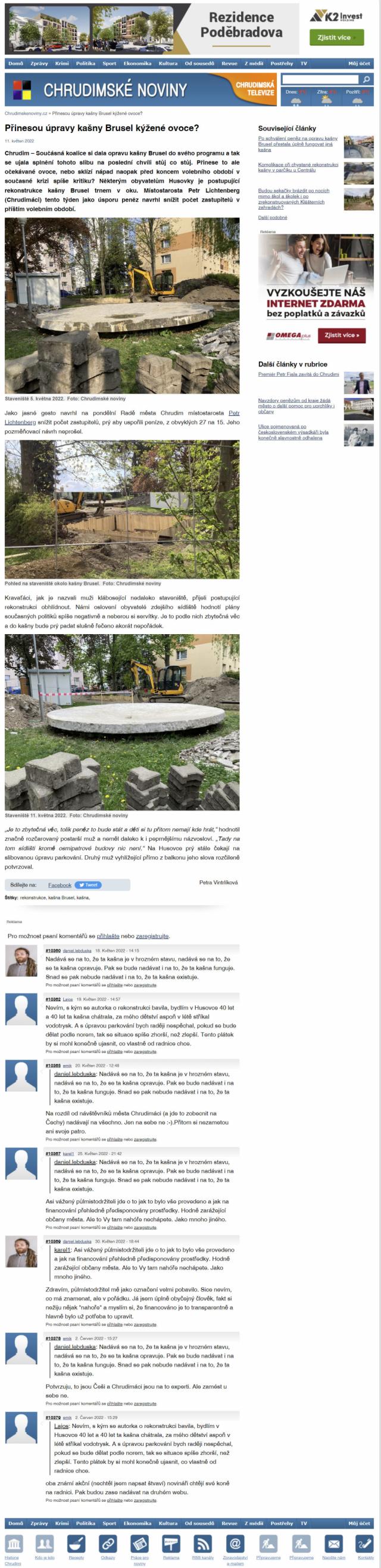 města Chrudim? odkazy: CHRUDIMSKÉ NOVINY https://chrudimskenoviny.cz/kategorie/zpravy/prinesou-upravy-kasny-brusel-kyzene-ovoce-0 https://chrudimskenoviny.cz/kategorie/postrehy/prestavba-kasny-brusel-odkazuje-na-velkou-lez NOVINY CHRUDIM Chrudimáci https://www.facebook.com/chrudimaci/ Další bod volebního