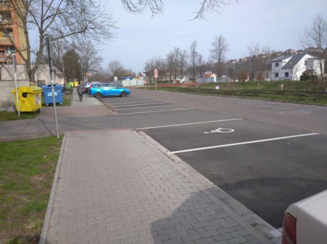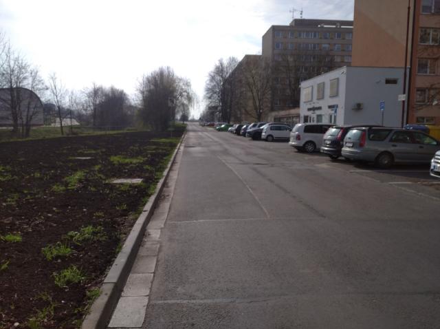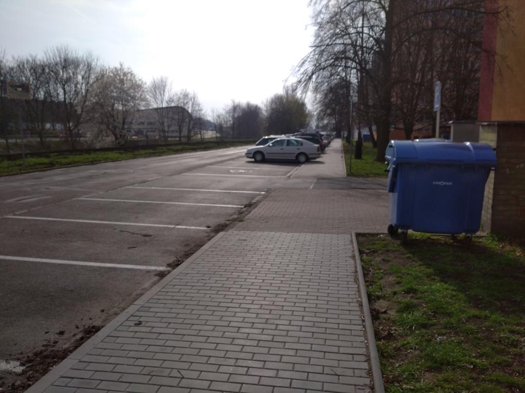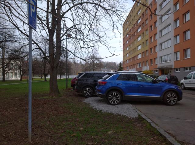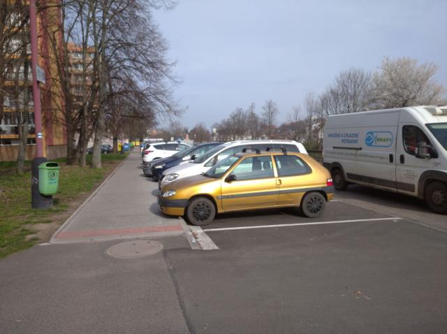 parkoviště, dlaždice, utrápené opravy radničních teroristů a údržbářů ·