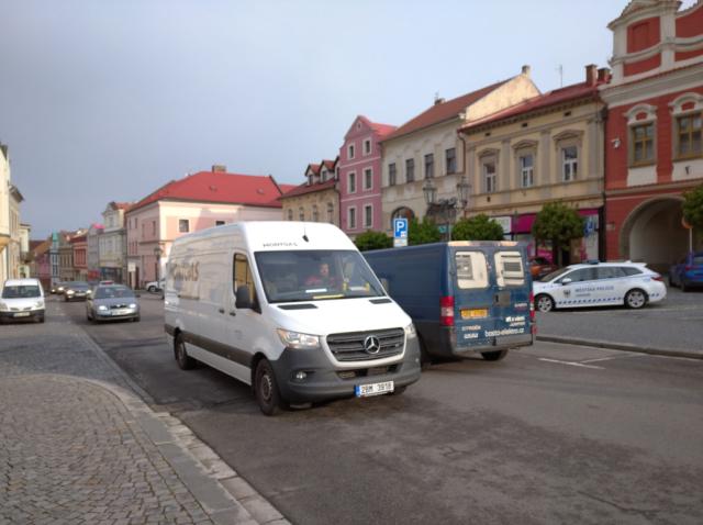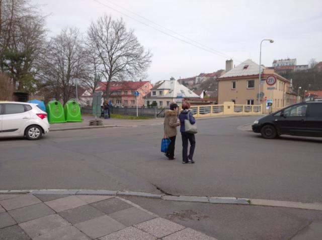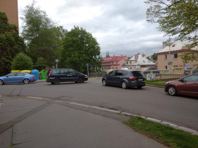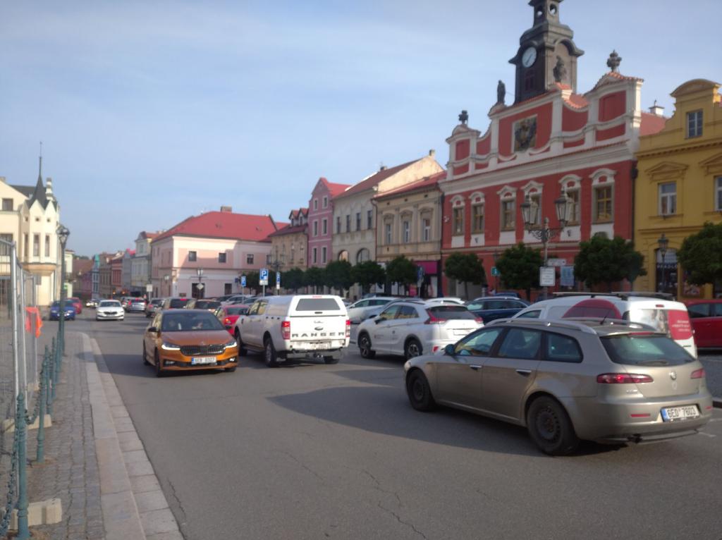 vnitřní tranzit aut po nábřeží a po náměstí oběma směry, včetně roky trvajících