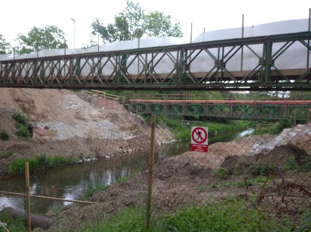 inženýrských sítí, chodníčku, lepičů asfaltu, parkovišťátka, nyní lávky a pak