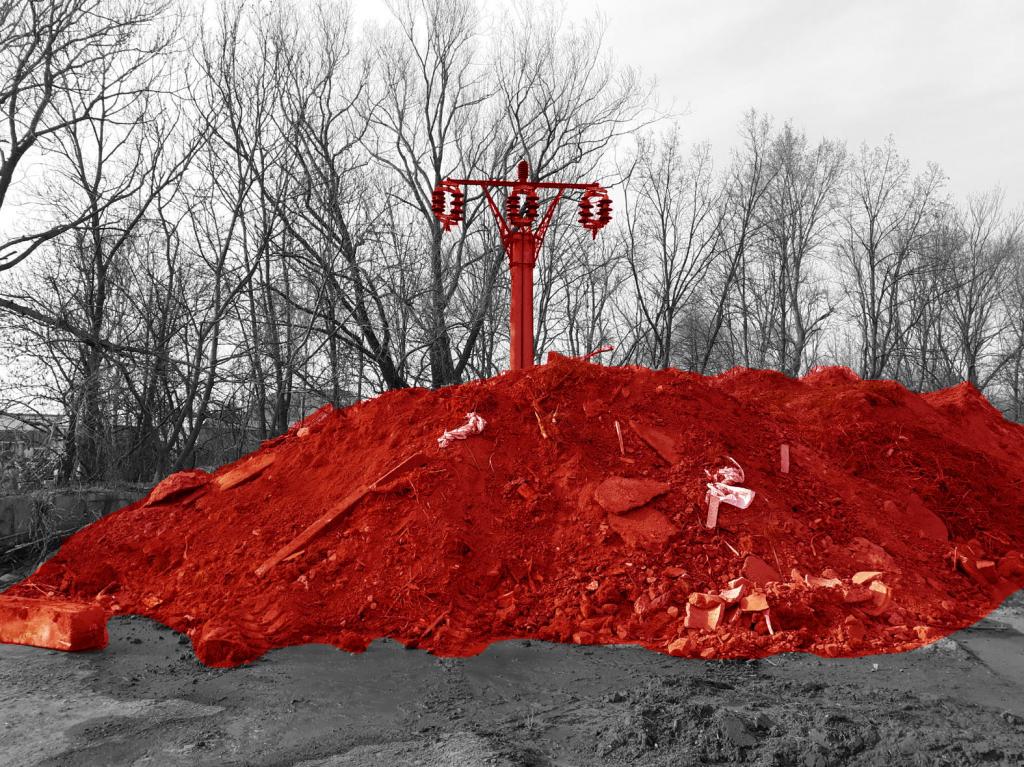 druhé straně skládka odpadu – úložiště inertního materiálu. Oboje v režii