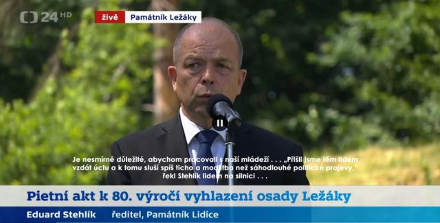 Čt 24 https://ct24.ceskatelevize.cz/domaci/3508881-pietni-shromazdeni-pripomina-vypaleni-osady-lezaky https://www.ceskatelevize.cz/porady/10997918455-mimoradne-porady-ct24/218411034000030/ Památník Ležáky, NKP Pietní