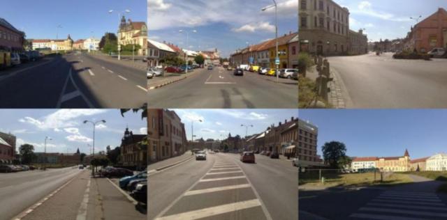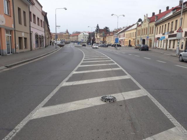 zhodnocení náměstí pomocí silnice – asfaltu a betonové dlažby je velice jednoduché.