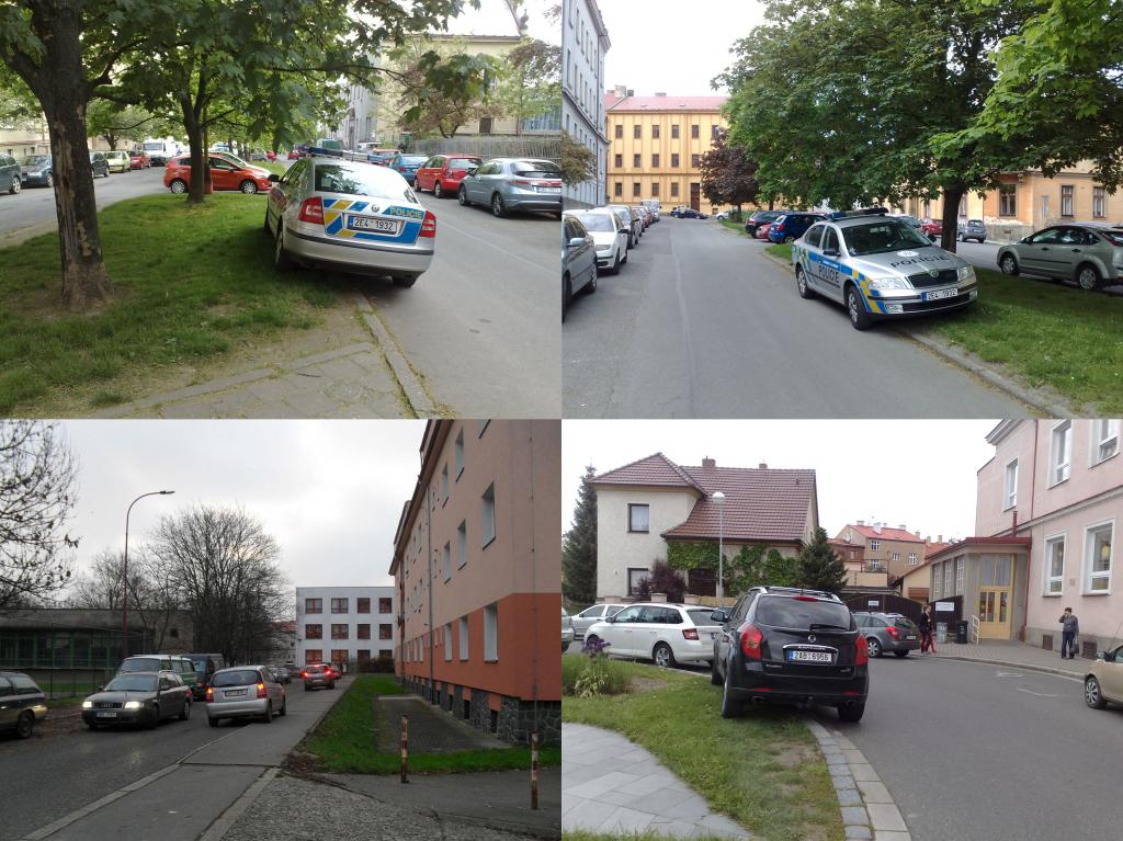 městské instituce Řadu ploch kolem městských veřejných institucí vyplňují parkoviště. Kde a pro koho by parkoviště měla být? Pro návštěvy? Možná město má nějaký obrázek toho, kdo vlastně parkuje na chrudimských zpevněných plochách v centru, kolem hradeb, na parkovištích úřadů, městských, státních či krajských organizací. Je velmi jednoduché někde začít. Zaměstnanci placení městem, krajem či státem vůbec nemusí parkovat tam, co dneska parkují. Parkování a školy Parkoviště u českých škol, to je velmi smutná kapitola spojená s českou vzdělaností a s místy kde se rodí. Okolí základních a středních škol a školek, tvoří namnoze nevzhledný a dopravně kolizní veřejný prostor města. Školy vyrůstají z parkovišť, to je smutná realita, s kterou je konfrontována výchova mladých lidí. Parkoviště a auta jsou významně spojeny s důsledky špatného urbanizmu, špatné politiky stavění a dopravy. I tady se projevuje absence obyčejné pěší dostupnosti veřejné vybavenosti města pro většinu lidí. Těžko chodit dneska dětem do školy pěšky ze zástavby někde z pole za městem. Taková dnešní maminka nezřídka přifrčí rovnou z pole ze svého snu o bydlení, zastaví svou naleštěnou černou skříň o obrubník a hovořící do mobilu velikosti tenisové rakety zařizujíce svět kolem sebe vypustí potomka do školy, aby ho tady po skončení procesu opět nabrala. Pokud by v Chrudimi byla nějaká univerzita, už by měla z dotací u malé učebny jedno nebo dvě velká parkoviště, pro žáka a jeho učitele, aby nemusel vozit vědomosti, pozorovaného prvoka, nějakou tu buňku a pitvané stéblo trávy třeba městskou. V Chrudimi se během let toho moc kolem škol nezměnilo. Město dál podporuje příčiny vedoucí ke školním parkovištím, dál podporuje nevzhledné uliční a veřejné prostory kolem chrudimských škol. Někde udělají dopraváci své maximum – jednosměrku a možná už nevidí, že za rohem jezdí auta i po chodníku, kde chodí děti. Někde postaví parkoviště rovnou před školními dveřmi, aby se dětem pak lépe chodilo přes projíždějící auta do školy. Ovšem svou nezastupitelnou roli zde hrají rodiče. A jak vidět, zatím je to v Chrudimi netrápí. Parkování a