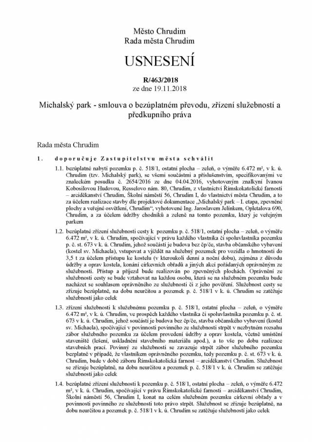 jej potom, jak se říká v usnesení, vezme Římskokatolická farnost zase zpátky. Michalský park se opakovaně projektuje celé čtyřletky. Na