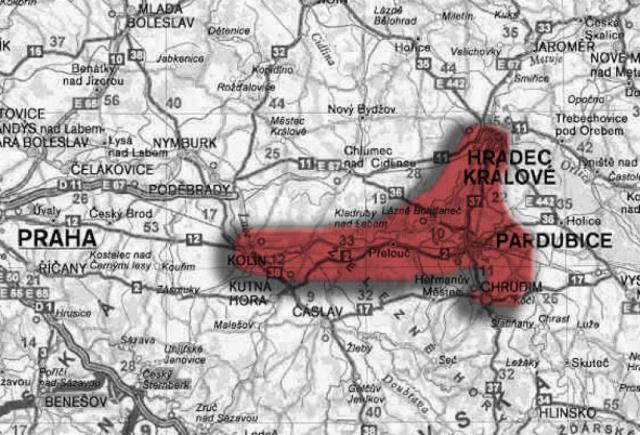 Polabí mezi Hradcem Králové a Pardubicemi, potažmo Hradcem a Kolínem, které to