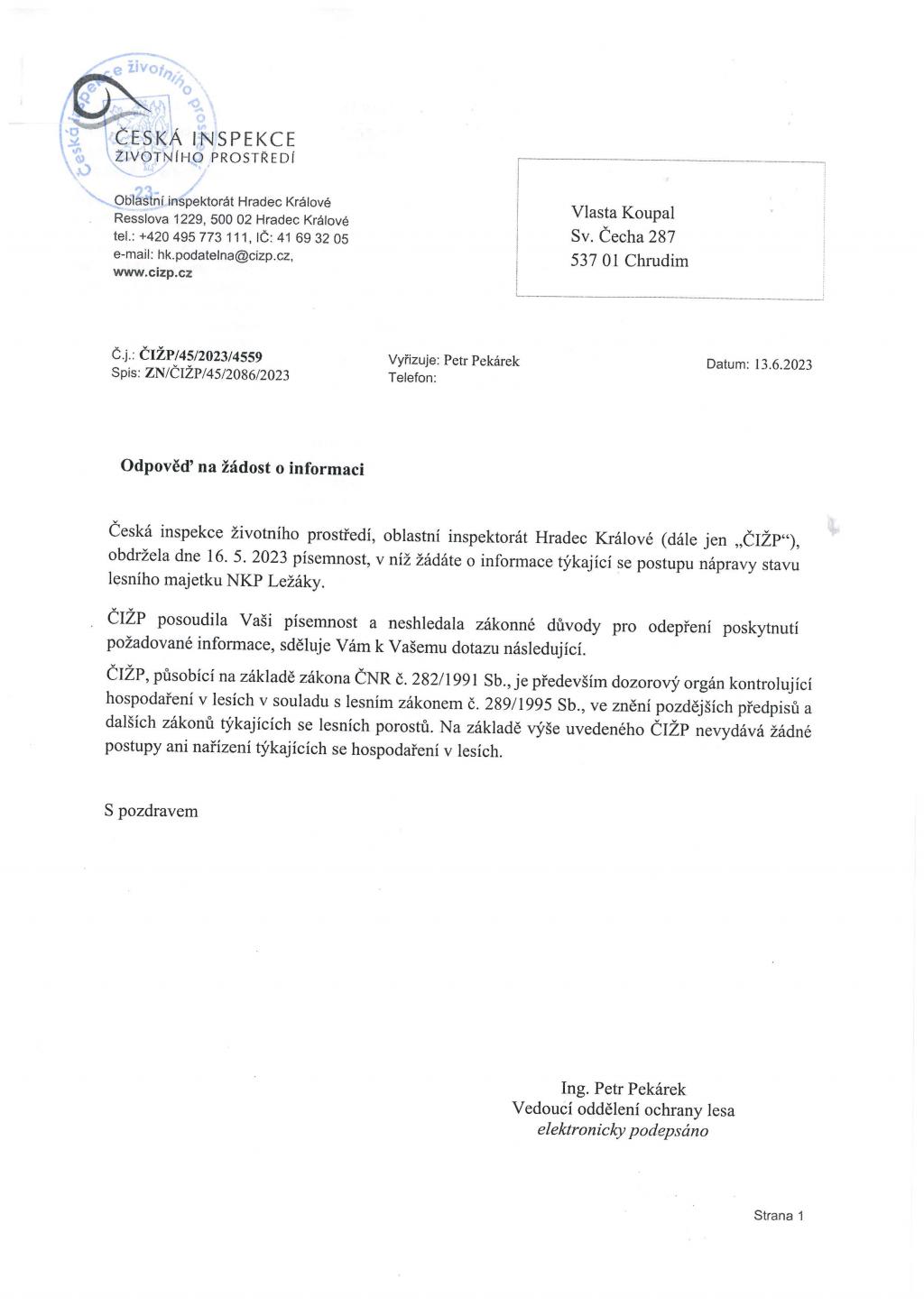 Ležáků po svých úřednících podepisuje, když mi odpovídá na dopis něco, čemu