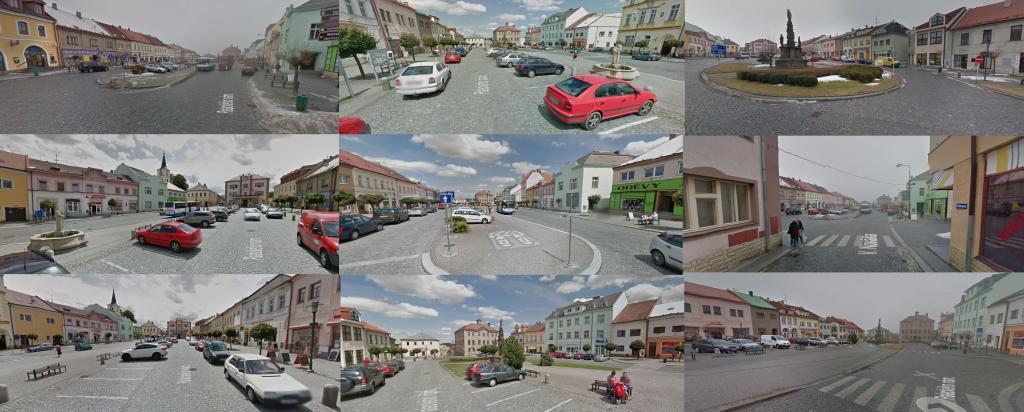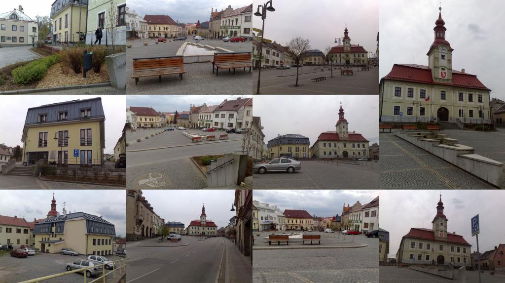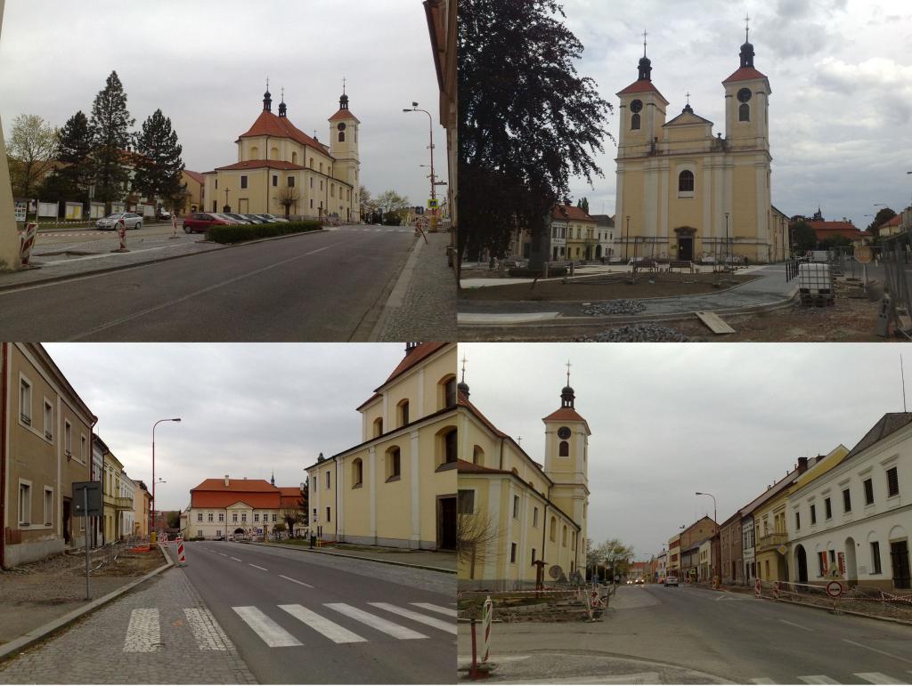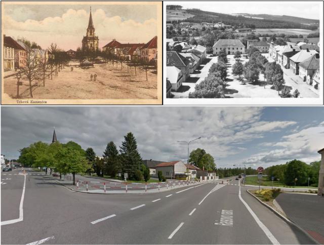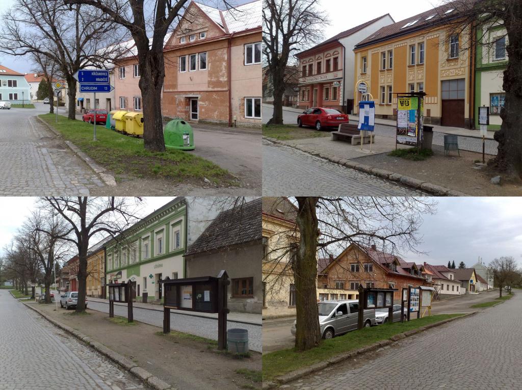 Náměstí Společné mají to, že leží uprostřed měst a obcí. Společné také mají to, že se dnes různě opravují a rekonstruují, dostávají novou podobu. Společné pak mají to, že jsou prý podle politiků a architektů nová. Nové věci se počítají, jenže občas jsou dnem vzniku už stará a tak jen dál čekají ve své zatím neobjevené a zapomenuté nadčasovosti na oprášení a na to, až budou objevena ve své přirozenosti a jako životní prostor uvnitř měst doprovázet své obyvatele jejich životy další stovky let. Žijeme v době, která musí být ráda za nové věci. Musí být ráda, že se vůbec něco podaří udělat. Žijeme ve věku, který skoro nedává právo dívat se na věci kriticky díky všeobjímajícím dobrým úmyslům, dláždící nejen náměstím cestu k lepším zítřkům. A tak kromě ukázkových oprav či oprášení zapomenuté krásy center českých měst i dnes stále žijí a dokonce vznikají realizace, bez kterých by se budoucí svět měl už konečně obejít. Návrhy a podobu českých náměstí stále výrazně ovlivňuje a mění česká dopravní lobby. Česká města a jejich centra jsou stále v jejím područí. Politici jsou pyšní na to, že Česko je výrobnou aut, jsou pyšní na tento způsob zaměstnanosti, HDP i devastující ropnou kulturu. Jo takhle kdyby Česko bylo opravdu špičkou, mělo své vlastní přepravní výtvory, které by už dávno byly opravdovým symbolem techniky, pokroku a vlastní cesty pro soukromé i veřejné cestování, anebo našlo konečně fungující alternativní řešení ke stávající automobilové dopravě a špatné kultuře aut. Tohle všechno se negativně odráží v krajině, ve městech a přenáší se to do celého veřejného prostoru kolem nás. Kultura aut vytvořila závislost podporovanou nejvyššími místy, vytvořila pohled na okolní svět. Přes ní se díváme na svět kolem sebe. Promítá se do jeho budování a oprav, z pohledu aut se utváří města, formuje se jejich veřejný prostor od celku po detail. Člověk a všechny ostatní věci přestaly být v uplynulých sto letech určující. Mají náměstí něco společné kromě aut? I dnes řada náměstí ožívá, začínají být opět pestrým centrem života. Kromě nesmyslné pozdější novodobé členitosti vzniklé asi ze strachu života ve volném placu stále obsahují historicky prověřené atributy jako vodu, sochy, krásné detaily, to vše zasazené do učebnice architektonických stylů obklopujících domů. A tak by se dalo pokračovat. Jenže pro mnohé politiky a architekty je tahle nesnesitelná lehkost pro obnovu stále nepochopitelná, skličující a moc obyčejná. Veřejný prostor města není podle nich stále hotov, dokud není rozčleněn, nalinkován, zaplněn vším možným, no zkrátka musí být vidět, že se něco utratilo. Společné mají místa v centru měst, že je vesměs řeší dopraváci. Podle toho centra českých měst stále vypadají. Místo maximálně sdíleného veřejného prostoru, jakým náměstí byla, jsou s neskrývaně velkým úsilím projektována podle aut. Kultura náměstí, tedy města, je scvrknuta do dnešní automobilové kultury, která dá podobu i městskému centru a jeho vždy usilovně hledanému dopravnímu řešení. Náměstí je prostor, který stačil, či stačí udělat jen jednou, stejně jako řadu jiných veřejných prostorů města a pak o ně pečovat, aby mohly v klidu stárnout stovky let. Jeho krása je v jednoduchosti a stáří. Půdorys po staletí přibližně jasný. A když se něco vykope, tak se nadčasová kamenná dlažba vrátí a plocha opraví. To neznamená, že náměstí je mrtvou stavební konzervou. Ale zpět z uliček a náměstí středomoří a světa k nám domů. Hrochův Týnec Týnec dávno ztratil své náměstí. Takhle dopadne město, kde si lidé řeknou, že auto je středobodem jejich světa a života. Auto zatím zničilo náměstí a město. Takhle vypadá náměstí, které vám na přání postaví dopravní inženýři. Dlouhé studium a co z toho? Zničené město a místo náměstí děsivý prostor, příkop, silnice a dnešní děsivá kultura aut ve své opravdovosti a nahotě. Když lidé v té které době nemají lepší řešení, tak to neznamená, že neexistuje. To jen znamená, že věci lze velmi rychle zničit a pak hledat, jak se v nich opět zabydlet. Řešit města a náměstí z převažujícího a jednostranného pohledu aut, vyvolává nenávratná poškození. Kéž Hrochův Týnec bude mít dost sil a najde konečně řešení svého zničeného centra, bude opět příjemným místem pro lidi. Trhová Kamenice Jsou obyvatelé města, kteří si dokážou udělat díru do svého města a do náměstí. Žijí třeba v Trhové Kamenici. Již před více jak sto lety začaly padat městské brány a města slavnostně bourala svá opevnění, podle pravítek se bouraly silnice celými městskými čtvrtěmi. Jsme ve 21. století a baráky stále jako tehdy padají ve jménu krátkozrakosti a hlouposti. I dneska se vytvářejí díry do náměstí a do měst. Stejně před více jak sto lety bývá oblíbeným argumentem kolizní doprava. Školství už mělo dost času se na tyhle věci podívat z jiných úhlů. Pro tahle řešení dopraváci nemusí chodit do školy. Stačí, když někdo řekne, že se dopravákem už narodil, tedy řekne to za něj maminka v porodnici, kde dostane rovnou i diplom. Auto se stalo středobodem námětí. Město podlehlo rozmarům a momentálním dopravním trendům. Tohle nespraví ani kašna, která se tady opravuje, ani náměstí, které se někdy v budoucnu opraví. Přeju lidem, aby nalezli přívětivé a sympatické urbanistické řešení centra města, když už jej dokázali zničit. Přeju jim, aby našli odpovídající podobu náměstí, jako příjemného prostoru ke svému vlastn