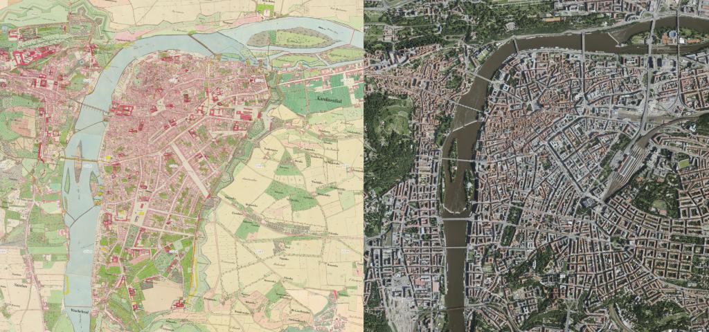 revitalizace naprosto zničeného města v úseku bývalých hradeb od