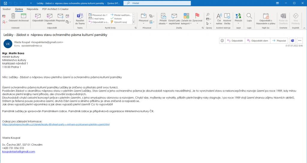Lidice, v kopii pak MK-ČR, jako zřizovací organizaci, abych ji neotravoval.