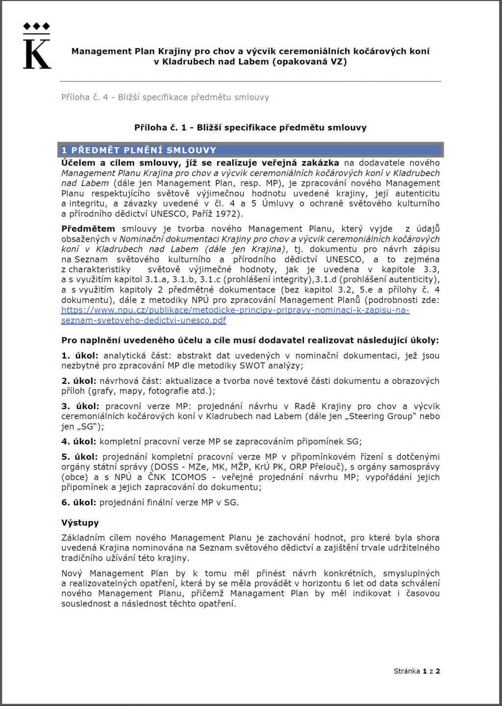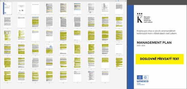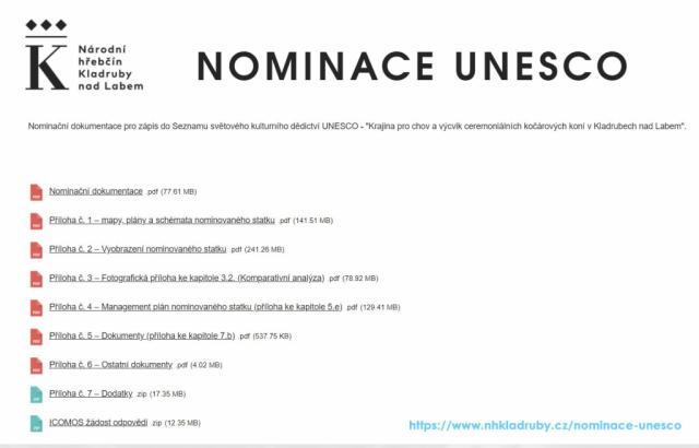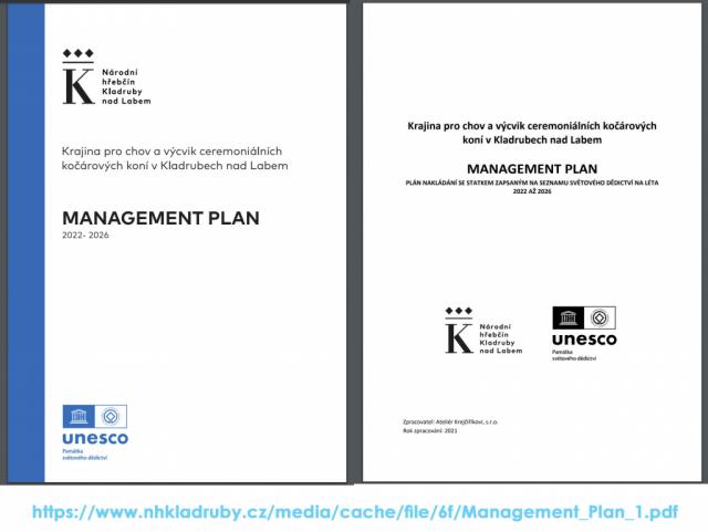 a výcvik ceremoniálních kočárových koní v Kladrubech nad Labem". https://www.nhkladruby.cz/nominace-unesco MANAGEMENT PLAN 2022 - 2026 https://www.nhkladruby.cz/management-plan Doporučená struktura