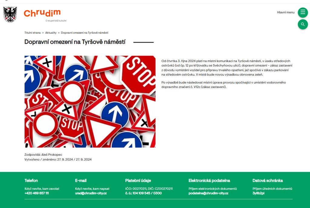 aktualit a dopravních omezení na Tyršově náměstí: „V místě bude novou výsadbou