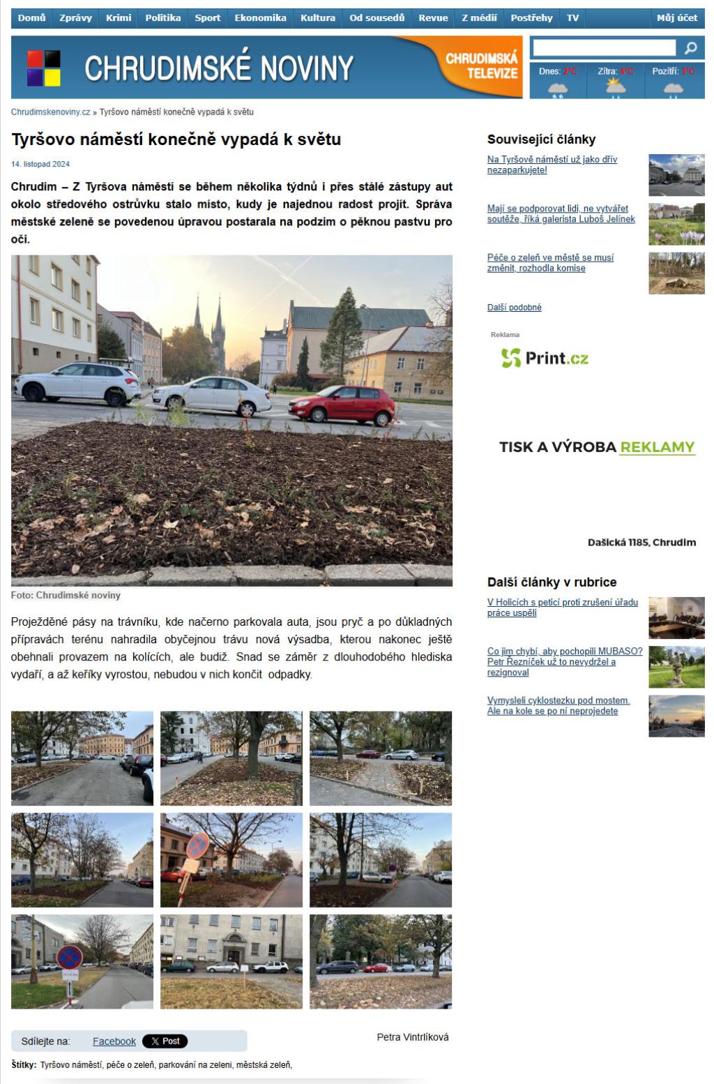 obnovena zeleň.“ Náměstí!!! v Chrudimi je řešeno v roce 2024