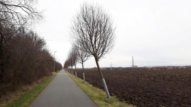 sama asfaltová cyklotrasa s veřejným osvětlením, která nahradila dřívější