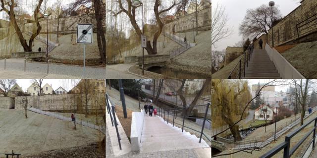 pod hradbami místo rekonstrukce schodiště bez souvislostí. Ale aspoň člověk ví,