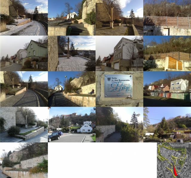 Nepomuckého a navazující svahy? Je to pěkný pohled? Ulicí Na Sádkách, nebo ohavným