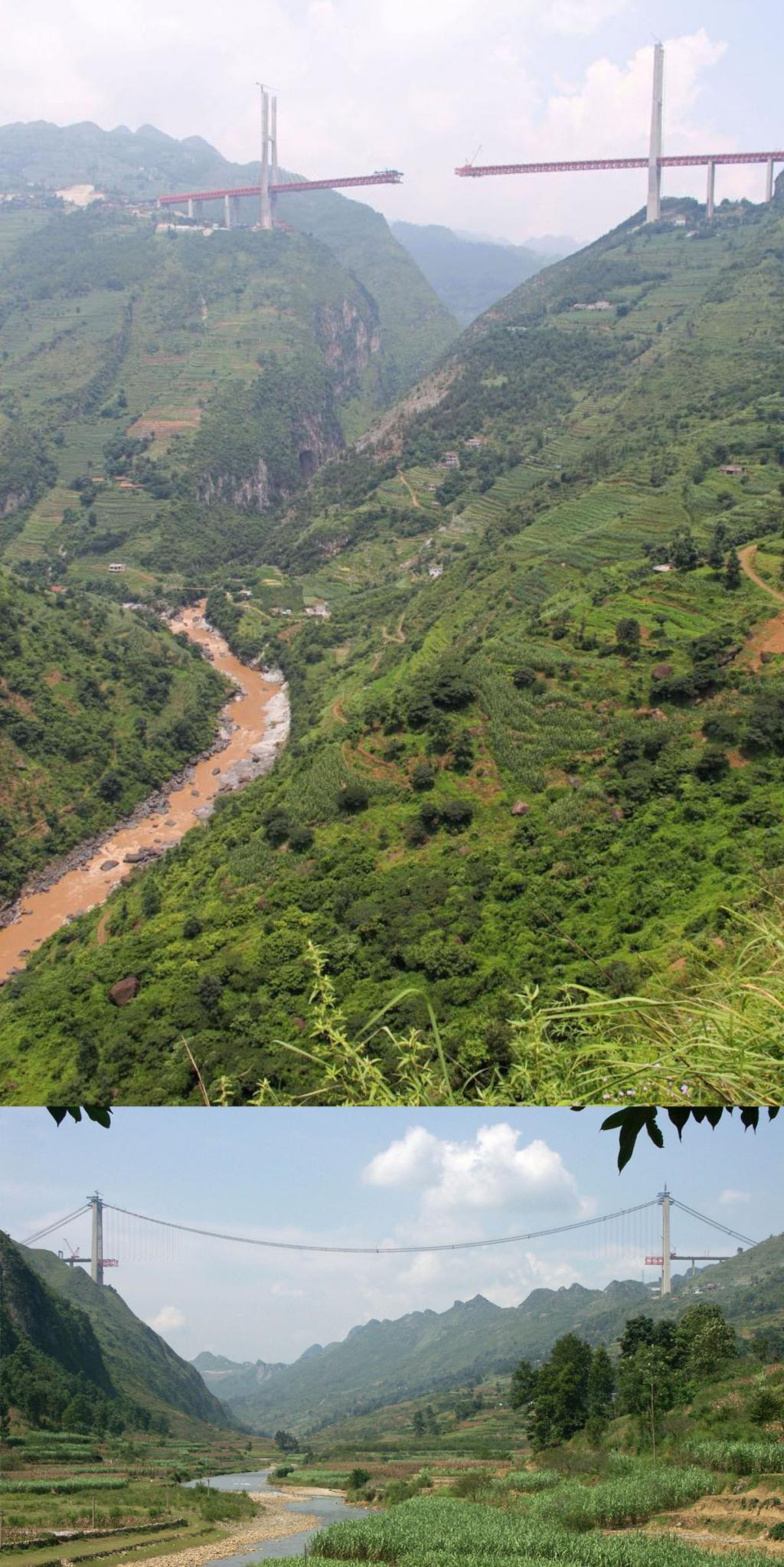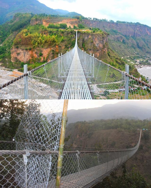 rozpětí 576 metrů a výšku 122 metrů nad řekou Kaligandaki. A jak rychle byly