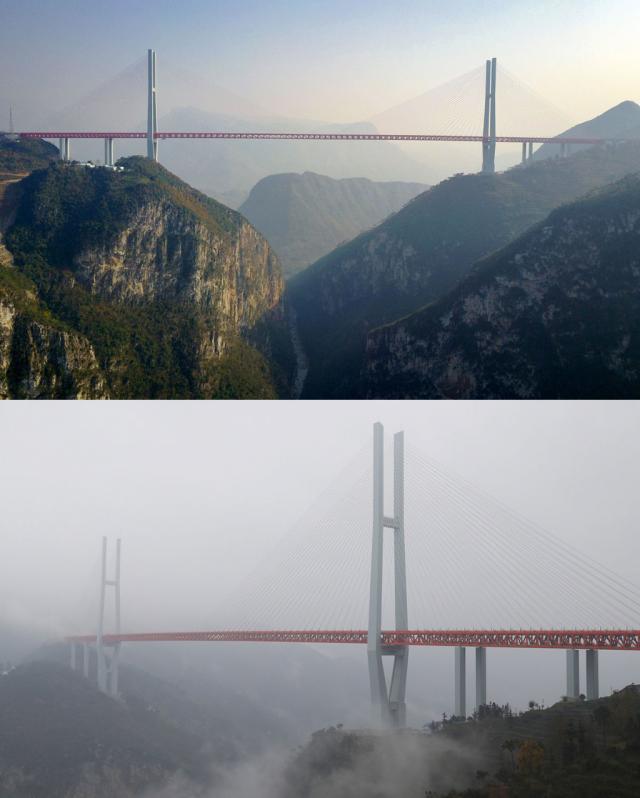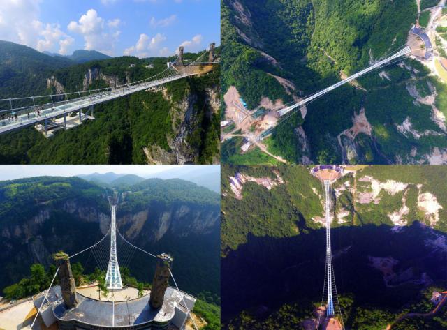 de Millau po 16 měsících, kde výstavba skleněné lávky Zhangjiajie, kde výstavba