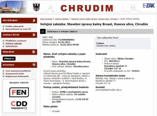 prostranství. (Pozn.: předpokládaná hodnota veřejné zakázky k 02/2022 byla 2 178 359 CZK, buď někdo