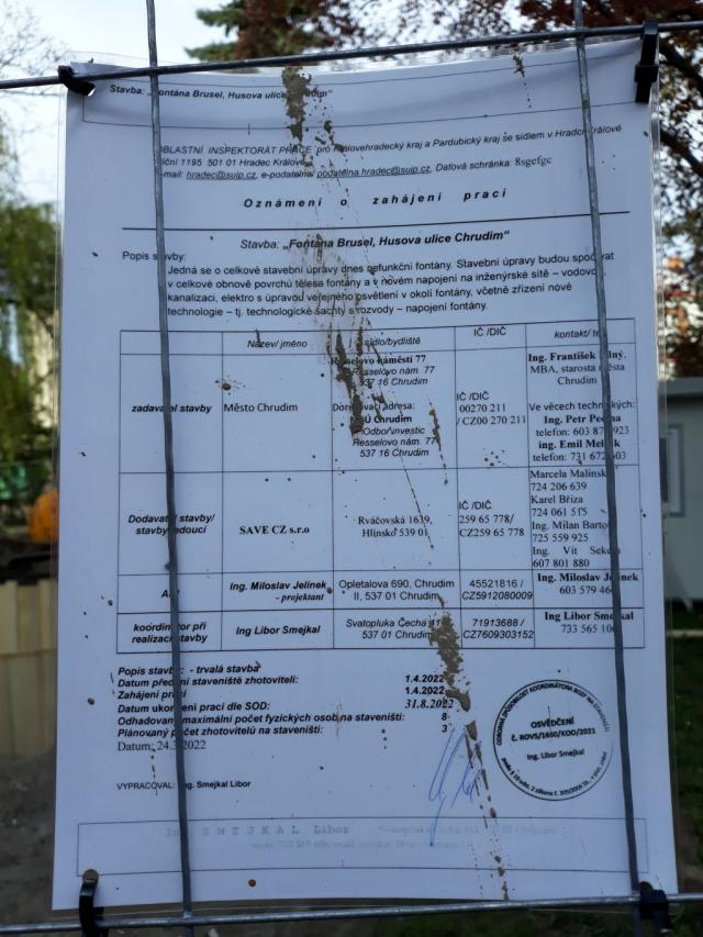 úpravy kašny Brusel, Husova ulice, Chrudim Název: Stavební úpravy kašny