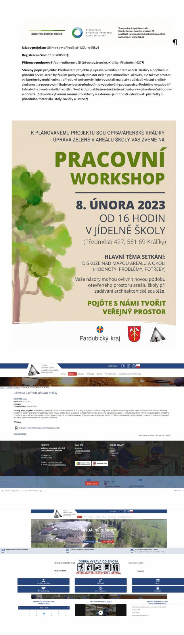 v praxi ve školním areálu v krásné krajině pod Kralickým Sněžníkem?