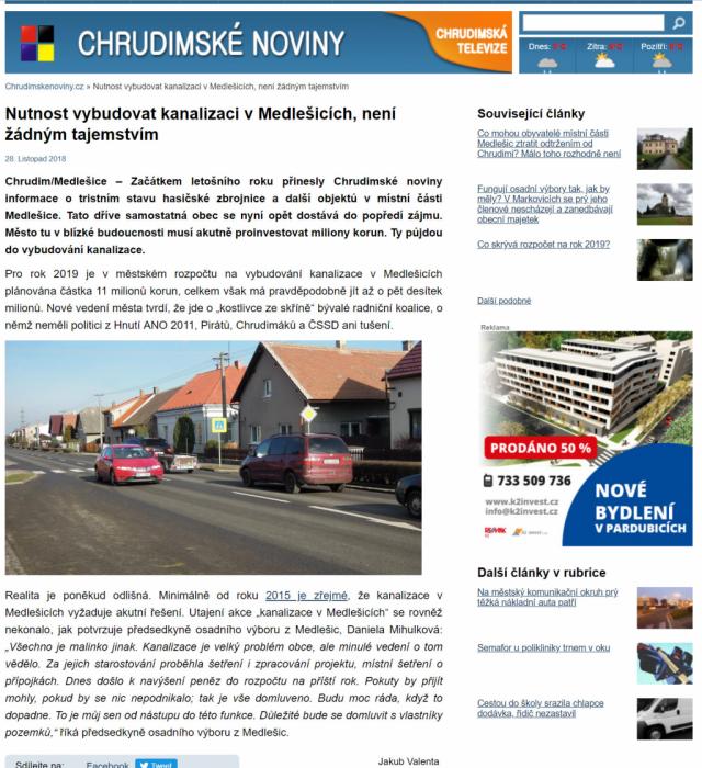 ANO se poprvé prezentoval úvodním slovem v Chrudimském zpravodaji 12/2018.